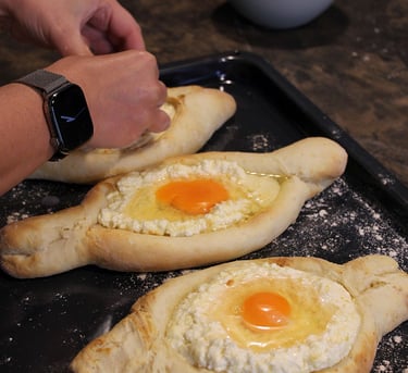 4 skirtingų chačapuri ruošimas jaukioje mūsų virtuvėje.