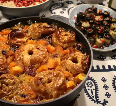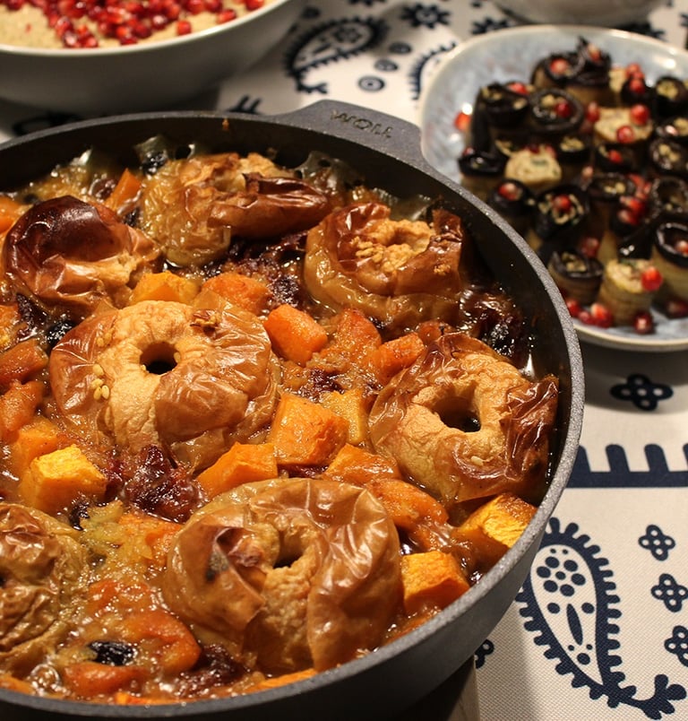 Ruošite keturis gardžius patiekalus iš šviežio rudens derliaus: baklažanų ir kitų keptų daržovių salotos, moliūgų phali, žiedinį kopūstą su riešutiniu padažu ir rudens hitu tapusį desertą iš obuolių ir moliūgų.